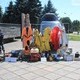 Пожарные города получили в подарок от гостей праздника огнетушитель, картину и книгу. Около здания музея истории города проходила выставка старых моделей пожарных машин.