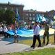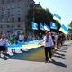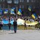 Впереди колонны несли большое полотнище государственного флага Украины. По ходу марша скандировали патриотические лозунги, пели национальный гимн.