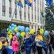 Елена Рубец - жена одного из защитников страны. Женщина пришла сюда поддержать мужа и его собратьев. С собой принесла целое облако желто-голубых шариков.