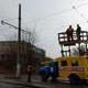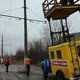 Рабочие восстанавливают контактную подвеску, украденную неизвестными на прошлой неделе. Похитили примерно четверть километра провода.