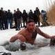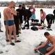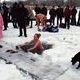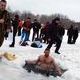 Около пятидесяти днепродзержинцев, согласно традиции, по очереди окунались в освященную священнослужителями прорубь.