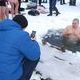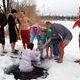 Парочка отчаянных родителей попыталась окунуть в прорубь ребенка, однако истошные вопли девочки их остановили.
