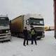 Из-за ледяной смеси, которая образовалась на трассе, фуры буксовали, в результате чего движение транспорта остановилось. Многие автомобили оказались в снежном плену.