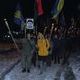 Размахивая флагами - национальными и с символикой ВО "Свобода" - марширующие дружно скандируют: "Наша земля - наши герои!", "Пам’ятай чужинець – тут господар українець!", "Комуняку - на гілляку!" и т.д. Над головами идущих возвышается плакат с портретом Президента Украины Петра Порошенко с пулей во лбу.