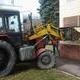 Рабочие пытаются вынуть из стены металлические штыри, которыми прикреплена гранитная плита. Несколько движений монтировкой - и плита легла на погрузчик. Ее повезли во двор горсовета.