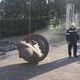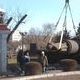 Работы по демонтажу выполняет нанятый подрядчик. В отличие от вчерашней многочасовой эпопеи, сегодня все прошло быстро - рабочие в спецодежде с надписью "Проммонтажсервис", закрепив на памятнике тросы, аккуратно подняли его с помощью крана и погрузили на грузовик.