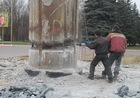 2 недели коммунальное предприятие «Комсервис» боролось с бетонным постаментом, который остался после снятия бронзового постамента и самого памятника "Железному Феликсу". Для этого понадобилось арендовать спецтехнику в Днепропетровске.