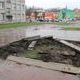 Рабочие демонтировали бордюр, ранее ограждавший одну из клумб неподалеку от места, где стоял памятник Эдмундовичу.