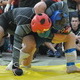 После десяти поединков турнира в бой вступили взрослые спортсмены, участвовавшие в разделе "герц-3". Здесь проходили самые жесткие бои. Сенсацию сотворил фанат "сталеваров" Даниил Захаркин, который завершил финальный поединок уже на седьмой секунде, послав прямым ударом в нокаут Акмаля Рустамова. Согласно правил казацкого боя, если после удара, бойца "повело" (т.е. он пошатнулся), рефери вправе остановить бой и присудить ему поражение. Чем и воспользовался судья. И все же самый интересный поединок зрители получили, так сказать, на "закуску". В последней паре Андрей Назаренко, представляющий фанатов футбольного клуба "Сталь, и Акмаль Рустамов из команды "Герц-ММА", показали яркое и захватывающее противоборство борясь за второе место. В пылу борьбы Андрей повредил палец на ноге, но не отказался от дальнейшего участия. И только в конце поединка удушающим приемом победу одержал его соперник.