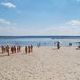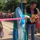 После этого городской голова Андрей Белоусов разрезал ленту и открыл левобережный пляж.