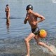 Заплыв проходил на городском пляже возле стадиона "Буревестник". Водный марафон получил название "Форсирование Днепра-2016, Огонь Прометея".