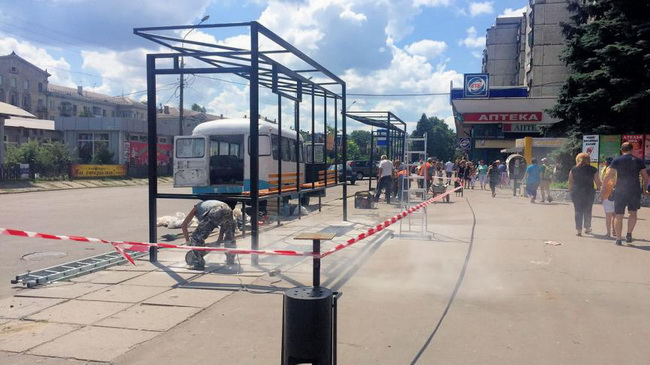 Вместо него устанавливаются два новеньких навеса, по конструкции идентичные тем, что были ранее установлены на проспекте Шевченко.