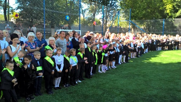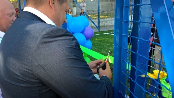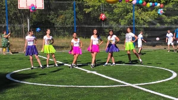 Дети провели показательные выступления по тяжелой атлетике, футболу, рукопашному бою и черлидингу. Сама линейка проходила на новом футбольном поле, которое Филатов торжественно открыл, перерезав ленту.