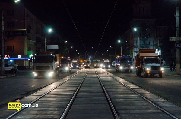 В ночь с 3 на 4 сентября в Каменском (Днепродзержинске) была проведена генеральная репетиция парада коммунальной техники, который запланирован ко Дню города.