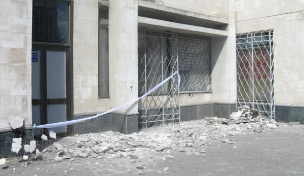 Здание кинотеатра "Мир" в Каменском ветшает и постепенно приходит в негодность. Первого сентября обвалился значительный фрагмент бокового фасада (перед входом в библиотеку).