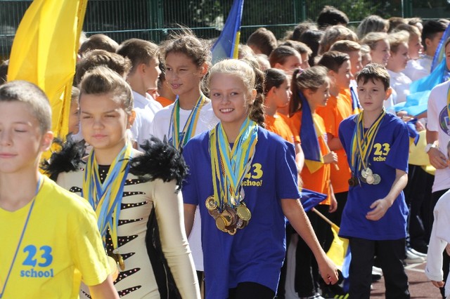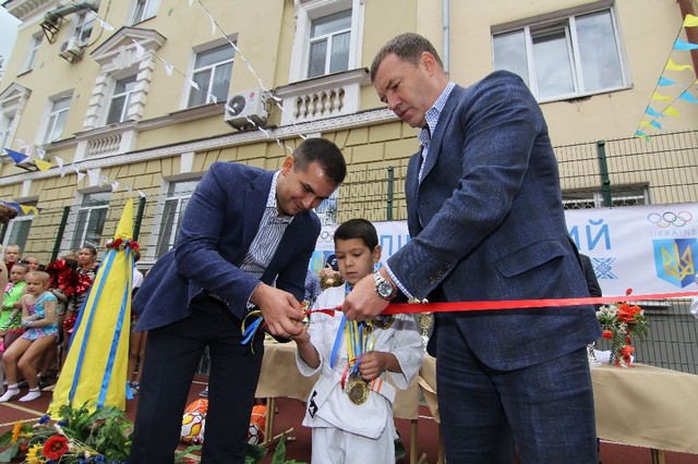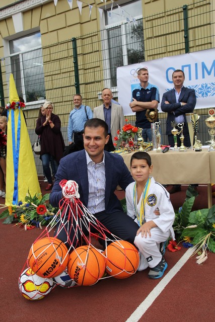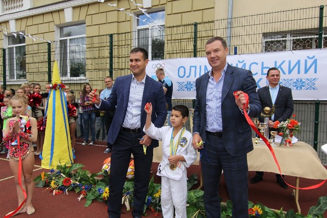 Во время праздничной линейки дети демонстрировали спортивные достижения, среди учеников обеих школ уже много чемпионов области и даже Украины по различным видам спорта - легкой атлетике, шахматам, художественной гимнастики. Также Камиль Примаков передал школьникам футбольные и баскетбольные мячи. И забросил первый мяч в корзину вместе с президентом БК «Днепр». Во время открытия площадок школьные команды сыграли в мяч с лучшими баскетболистами города, игроками БК «Днепр».