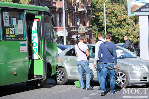 В понедельник, 19 сентября, в центре Днепра на пересечении ул. Старокозацкой (Комсомольская) и ул. Андрея Фабра (Серова) произошло ДТП с участием пассажирского автобуса «Эталон» и легкового автомобиля Toyota Camry.