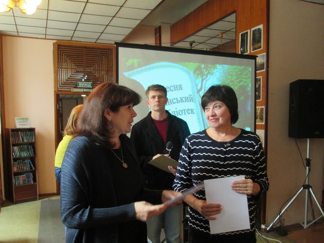 Від імені міського голови Андрія Білоусова колектив Центральної бібліотечної системи привітала з професійним святом начальник відділу культури департаменту з гуманітарних питань Кам'янської міської ради Наталія Ілларіошина. «Ми підрахували, що завдяки вашому вмінню вигравати гранти ви змогли заощадити близько мільйона гривень міського бюджету», – повідомила Наталія Ілларіошина.