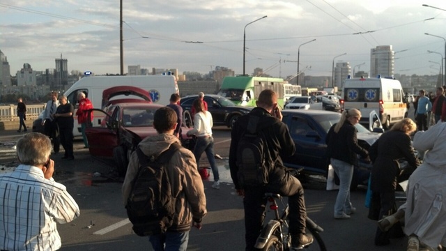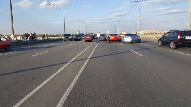 7 октября, около 16:00, в центральной части моста столкнулось 8 машин. Были перекрыты все полосы движения.