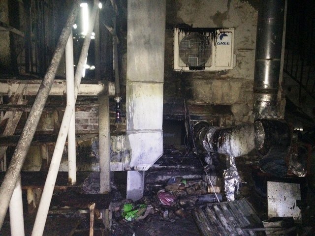 Площа пожежі склала 10 кв.м. Вогнем знищено двері, кухонні меблі та приладдя що знаходилось в ресторані, а також вікно квартири на третьому поверсі.