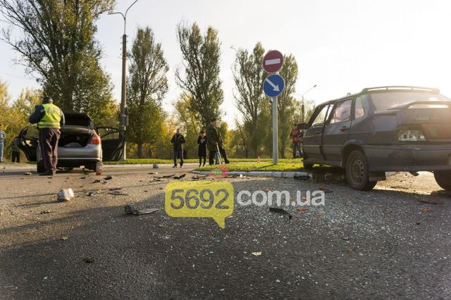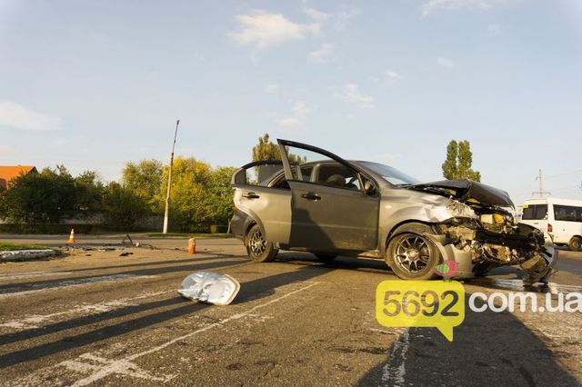 По словам одного из участников ДТП, который находился в автомобиль Chevrolet Aveo, его машина ехала по главной со стороны Елизаветовки, а водитель ВАЗ-21115 выезжал со стороны кинотеатра "Мир" и не уступил дорогу Aveo, сообщает 5692.com.ua. Водитель Chevrolet попытался уйти от столкновения влево, однако, несмотря на это, аварии избежать не удалось. В салоне иномарки находилась мать с трехлетним ребенком, они были госпитализированы в ГБСМП. По предварительной информации, они получили легкие телесные повреждения, однако точную степень тяжести их травм установят медики после осмотра. На момент приезда журналистов на месте уже работали сотрудники дорожной полиции.