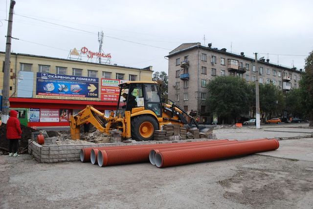 «Это ливневочные трубы для усиления приема воды, – рассказал бригадир объекта Станислав Каряка. - Будут сделаны дополнительные коллекторные ветки для увеличения приема воды. Возле «Фуршета» уже сделаны два ливнеприемных лотка и от них будет проложено по 20 метров труб».