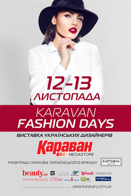 12-13 ноября 2016 года в ТРЦ «КАРАВАН» в Днепре уже традиционно состоится модный шопинг проект – выставка украинских дизайнеров « KARAVAN FASHION DAYS », где соберутся лучшие производители Украины, которые смогут не только продемонстрировать свои эксклюзивные коллекции, но и продать их посетителям.