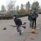 Некоторые дети прихватили с собой атрибутику – косы и топоры из папье-маше или же даже пришли в костюмах любимых героев. Так, например, одна девочка пришла на Halloween в костюме Super girl. Атрибутику использовали для фотосессий в красивом осеннем парке на фоне опадающей листвы.