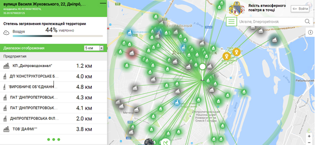Насколько загрязнена окружающая среда в конкретном месте области, какие предприятия больше всего влияют на состояние экологии в этой точке и где находятся ближайшие зоны отдыха. Все это можно узнать на сайте ecoinfo.dp.ua.