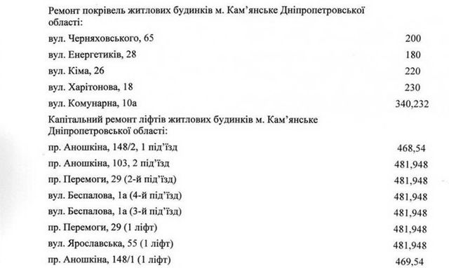 «Мне удалось получить дополнительное финансирование для моего избирательного округа в Каменском: субвенцию из государственного бюджета в размере 5 163 703 грн. Постановление Кабинета Министров Украины уже подписано. Дома, адреса которых прикладываю на фото, получат капитальный ремонт кровель и лифтов. Времени на выполнения работ осталось очень мало, поэтому городским департаментам придётся приложить все усилия, чтобы люди получили долгожданные ремонты», - пишет Дубинин в своем фейсбуке.