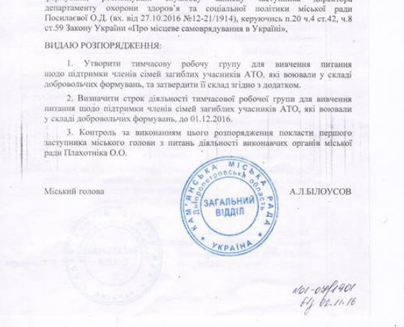 В настоящее время семьи добровольцев лишены статуса и не имеют право на материальную и другую государственную помощь, гарантированную воинам ВСУ. На местном уровне в Каменском после смерти в конце августа добровольца, каменчанина Евгения Волошина решили изменить ситуацию. Каменская "Свобода" подготовила обращение к городскому голове Андрею Белоусову и получила ответ. На данный момент подписано распоряжение о создании рабочей группы по разработке механизма предоставления помощи семьям погибших добровольцев. Первое заседание группы состоится уже 10 ноября.