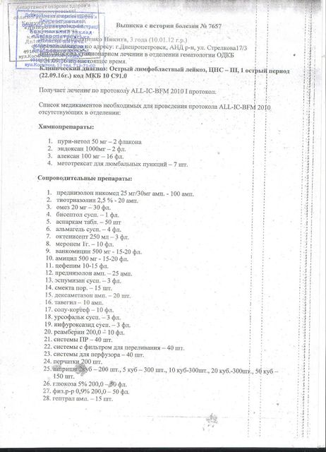 Единственное, что может сейчас спасти Никиту - это химиотерапия и сопутствующие препараты. Но, увы, в больнице этих медикмаентов нет. Родители или покупают эти лекарства за свой счет, или…лечение просто продолжаться не может…