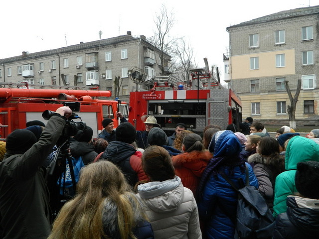 Перед фасадом пожарно-спасательного подразделения личный состав спасателей продемонстрировал молодому поколению спецтехнику, которая непосредственно выезжает на ликвидацию пожаров и последствий разного рода чрезвычайных происшествий. Также пожарные подробно рассказали и продемонстрировали специальное оборудование, которое используется при тушении пожаров и ликвидации последствий чрезвычайных происшествий. Кроме того, студенты узнали, что во время работы в задымленном помещении пожарные надевают аппараты защиты органов дыхания и работают в составе звена газодымозащитной службы. Сотрудники ГСЧС объяснили, что кислорода в таком аппарате хватает пожарном на 30 минут работы в задымленном помещении. Также была продемонстрирована в действии пневмоподушка, с помощью которой можно освободить человека из-под завала, открыть двери лифта и т.д. Желающие имели возможность примерить теплоотражающий костюм, который надевается во время работы при повышенной или высокой температуры окружающей среды, интенсивного теплового излучения и длительного действия пламени.