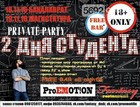 Fantasy также отметит целых 2 Дня студента - в пятницу и субботу. Здесь вас ожидает конкурсная шоу-программа от MC; самая популярная музыка от DJ's; PJ's show; фото-, видеоотчет и бесплатный бар.
