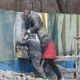 С самого утра люди с отбойными молотками оживленно трудятся над демонтажем надписи "Дніпродзержинськ" на трассе со стороны Соцгорода.