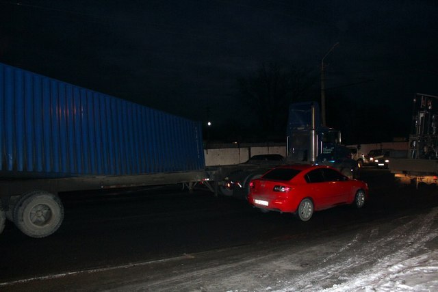 По словам полиции, в аварии никто не пострадал. Перевернувшийся прицеп никого не задел. Но вот из-за того, что контейнер лёг на полдороги, на ул. Янтарная образовалась пробка. Маршрутки и автомобили объезжают по тротуарам или через заправку.