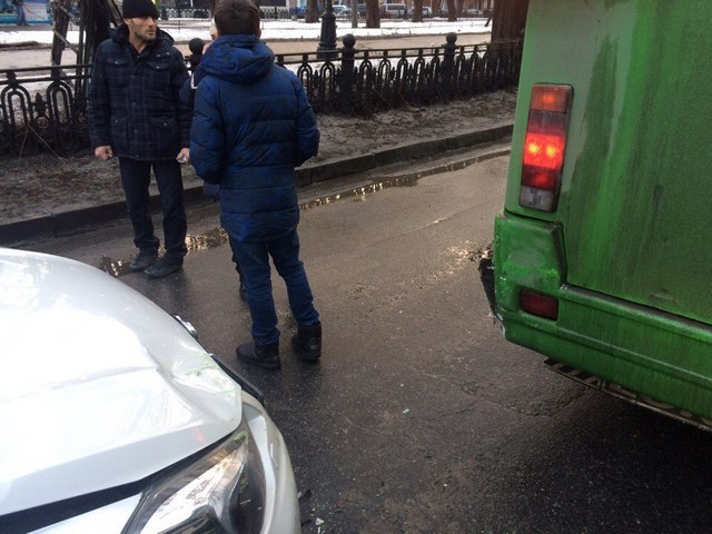 В следствии ДТП у автобуса поврежден задний бампер, а у легкового автомобиля — передняя часть: капот, решетка и передний бампер.