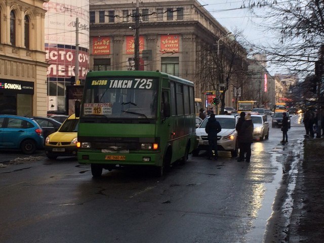 Сегодня, 27 декабря около 14:30 на перекрестке проспекта Дмитрия Яворницкого и улицы Мономаха произошло столкновение легкового автомобиля Subaru и автобуса маршрута №113.