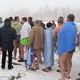 В ополонке окунались все - от мала до велика: пенсионеры, люди среднего возраста и даже школьники. Среди купающихся было много женщин. Выстроилась целая очередь - в маленькую прорубь можно было окунаться только по одному.