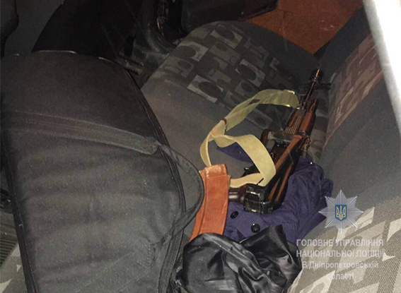 11 лютого до Дніпровського відділу поліції надійшло повідомлення від наряду патрульної служби про те, що на пл. Старомостовій зупинено автомобіль. Водій п’яний, під переднім пасажирським сидінням знайдено автомат та набої до нього.