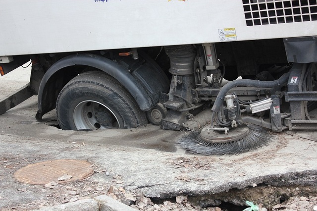 Очевидец происшествия рассказал, что как раз возле места пролома асфальта уже несколько месяцев зияет промытая яма.