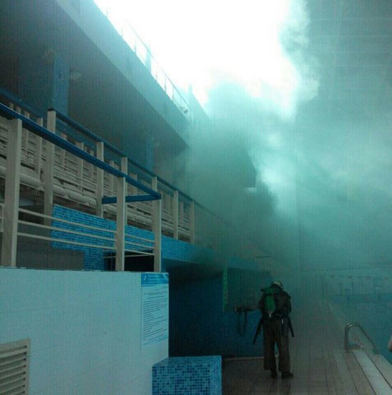 По прибуттю до місця події вогнеборцями було встановлено, що пожежа виникла всередині сауни на другому поверсі Спортивного комплексу "Метеор".