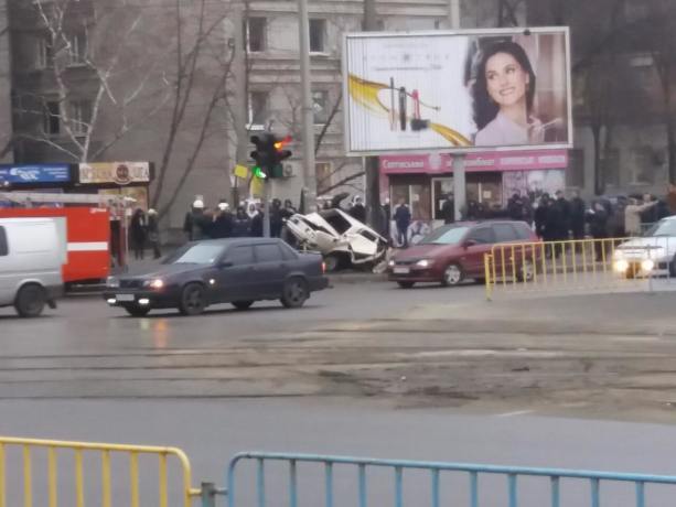 Сегодня около 17:10 на перекрестке улиц Владимира Антоновича (Свердлова) и Рабочей произошла авария: на большой скорости машина врезалась в билборд.