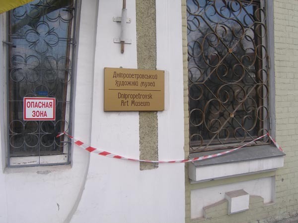 Возле Днепропетровского художественного музея появилась табличка «Опасная зона» и ограничительная лента.