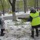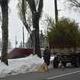 Вчера, улицы города освобождали от упавших деревьев и их частей. Сегодня, 20 апреля кучи веток и древесины, складированных вдоль дорог и тротуаров, убирают и перерабатывают на месте в щепу.
