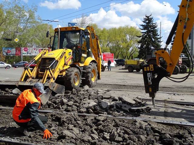 В Днепре начали ремонтировать участок дороги на трамвайном переезде в районе спортивного комплекса «Метеор».