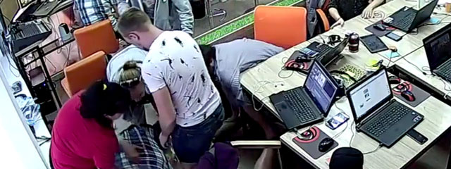 После публикации информации о задержании нарушителя ПДД, редакция продолжила работу в штатном режиме, но около 17:20 рабочий процесс был грубо прерван ворвавшимися в редакцию молодым человеком и женщиной.