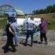 Коммунальная техника и правоохранители прибыли к газовому комплексу, расположенному при съезде с моста через реку Днепр на улице Тритузной в Каменском, 7 июня.