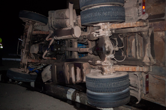 Однако, в кузове фуры находился металлолом, который не был надлежащим образом закреплен. Предположительно, при повороте металл внутри сдвинулся, сместив центр тяжести фуры, и спровоцировал аварию.