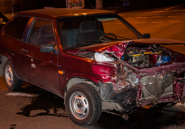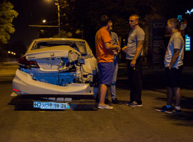 Ночью 1 августа, на перекрестке улицы Воскресенской и проспекта Яворницкого столкнулись ВАЗ и Honda Civic.
